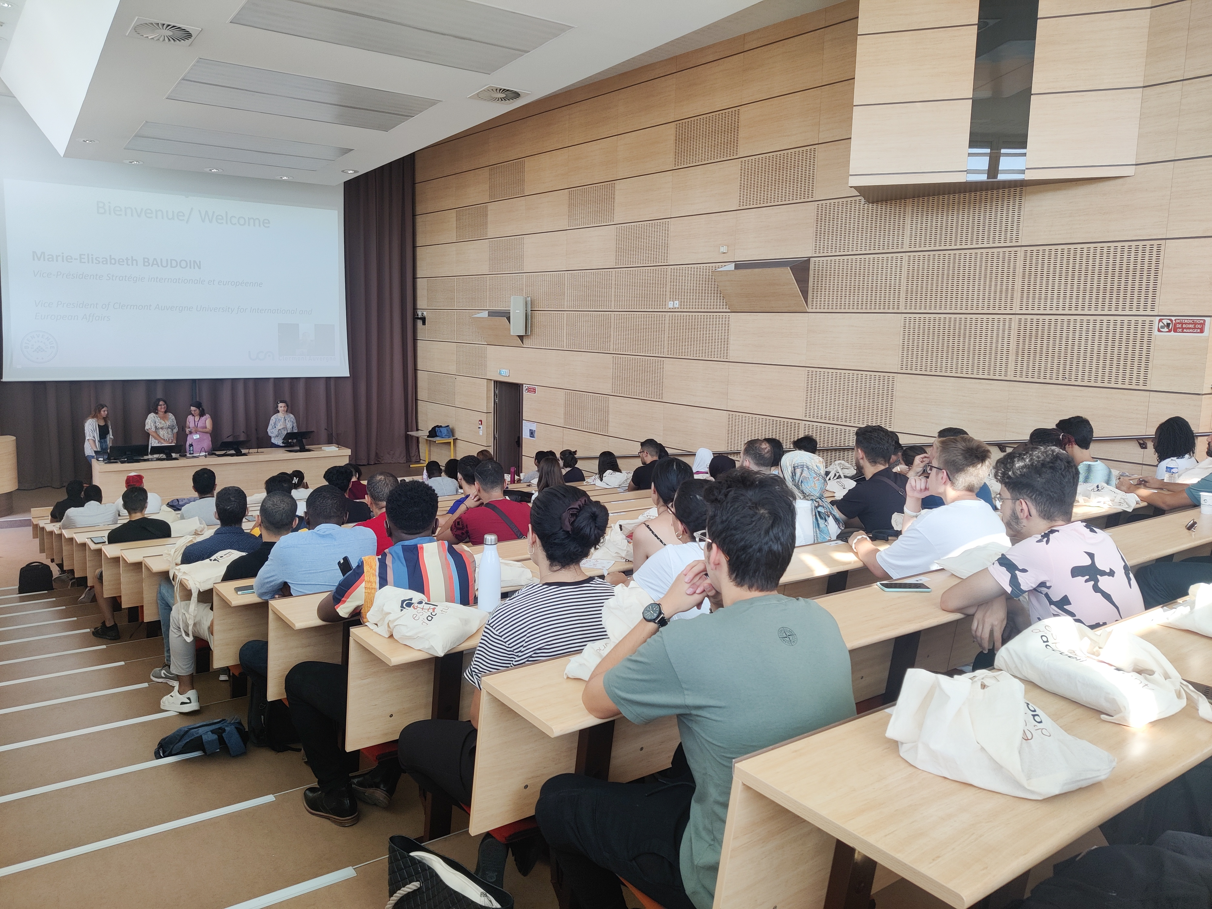 Après les mots d'accueil du Président de l'Université, Mathias Bernard et de la Vice-Présidente Stratégie internationale et européenne, Marie-?lisabeth Baudoin, la DRIF a fait une présentation de l’établissement, des services et des dispositifs spécifiquement con?us pour l’intégration des nouveaux arrivants. Le CROUS, l’association Worldtop, le Centre Europe Direct et la Direction des Relations Internationales de la Ville de Clermont-Ferrand se sont également mobilisés pour informer les étudiants sur leurs offres d’activités respectives.