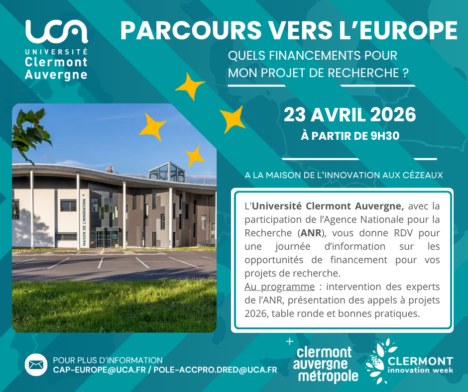 Ce temps d’échange sera marqué par les interventions de Valérie Sautou (CHU Clermont), Aurélie Gousset (UCA), Fréderic Laroche (AXELERA) et Fabien Marlin (CEC Massif Central).