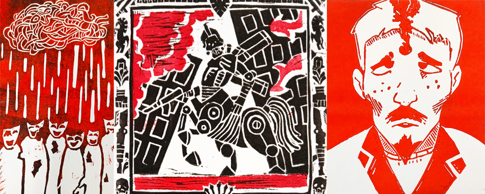 L'atelier Dessin, gravure et impression propose une exposition de gravures en lien avec les textes des poètes invités à la Semaine de la poésie.
