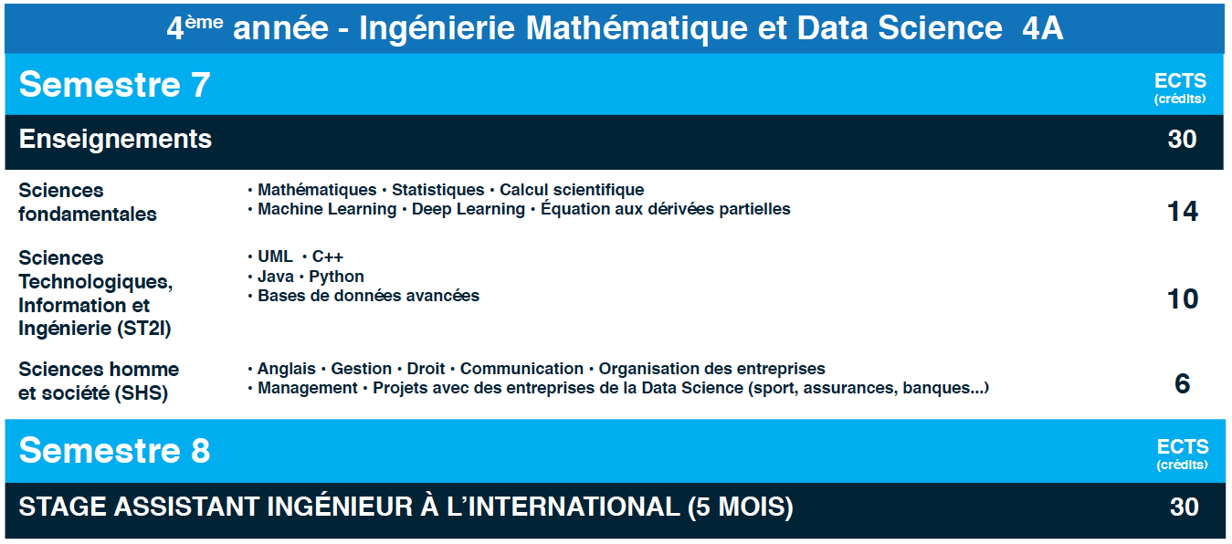 Le Département Ingénierie Mathématique et Data Science est une des rares formation en France qui dipl?me des ingénieurs de haut niveau en Data Science, ingénierie numérique et Intelligence Artificielle. En savoir plus
