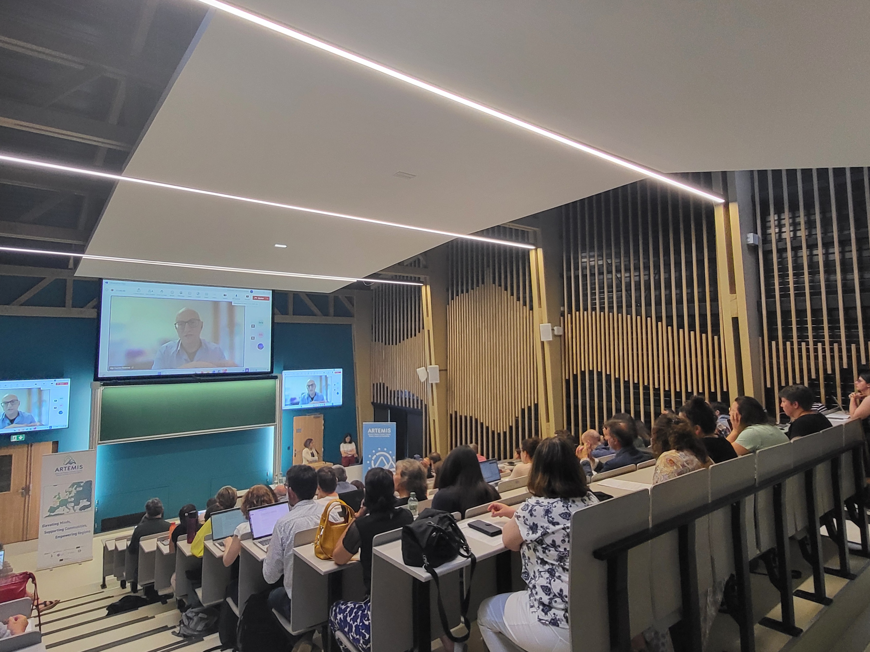 Le Président Mathias Bernard a ouvert la journée en rappelant l'implication des universités dans toutes leurs dimensions (formation, vie universitaire, innovation, lien avec la société, recherche) dans la construction de l'Université Européenne ARTEMIS. Une présentation du projet et de ses réalisations a par la suite été faite par la coordinatrice du projet et Vice-Présidente stratégie internationale et européenne, Marie-Elisabeth Baudoin.