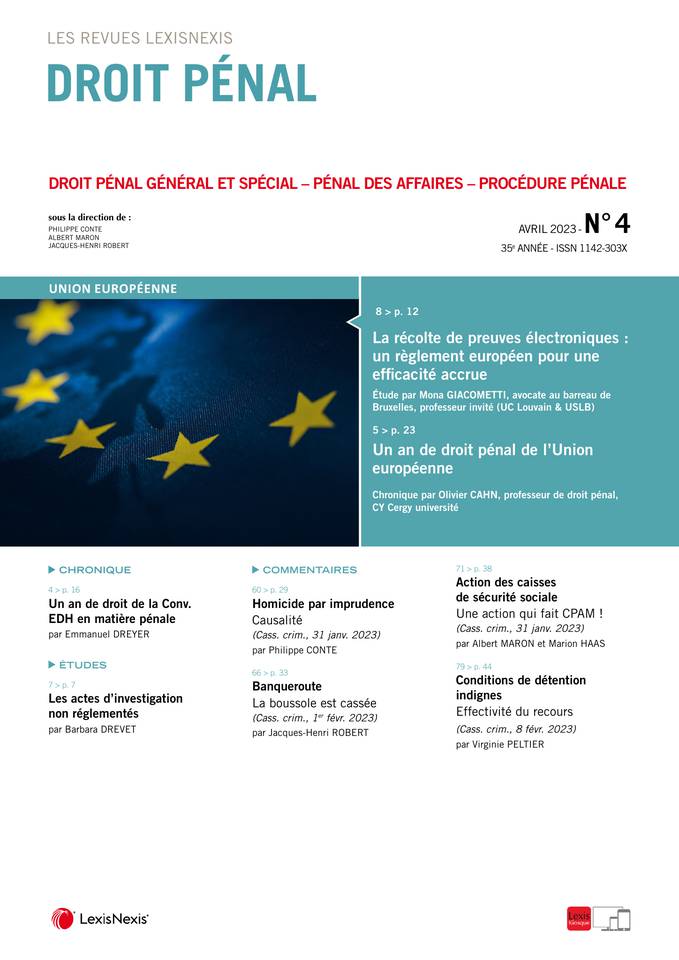 "Les actes d’investigation non réglementés : la relative légalité procédurale", Droit pénal, n° 4, 2023, étude 7, p. 7.