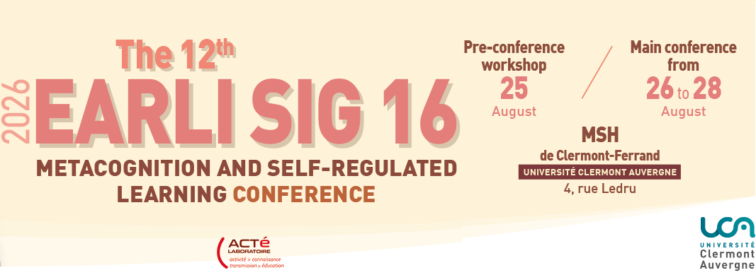 Cet événement est organisé par le laboratoire ACTé (Université Clermont-Auvergne) dans le cadre du Special Interest Group (SIG) 16 de l’European Association for Research on Learning and Instruction (EARLI). Le colloque porte sur la métacognition et l’apprentissage autorégulé à tous les ?ges et dans différents contextes.