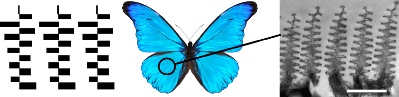 Structures obtenues par algorithmes (gauche) et naturelles chez le Morpho