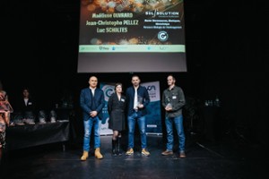 Prix remis par Léa ESBELIN, Sol Solution à Yann FEVRIER (?tudiant en dernière année du Cycle d'ingénieur Génie Physique à Polytech), son enseignant Fabrice AUDONNET, et son tuteur entreprise Pierre-Emmanuel BASILE au sein de l'entreprise Valmont France.