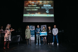 Prix remis par Astrid MESSY des Laboratoires Théa (sponsor) à Ma?lisse OUVRARD (étudiante en Master Géoressources, Géorisques, Géotechnique (3G) à l'OGPC), son responsable de formation Luc SCHOLTES, et son tuteur entreprise Jean-Christophe PELLEZ, pour le projet de stage au sein de l'entreprise Sol Solution.