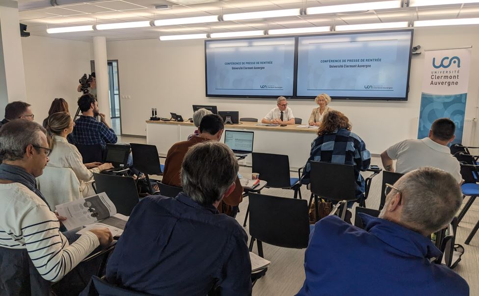 Mardi 10 septembre, le Président de l’UCA Mathias Bernard et la Vice-Présidente en charge de la Formation Fran?oise Peyrard ont re?u une douzaine de journalistes lors de la conférence de presse de rentrée de l’établissement.