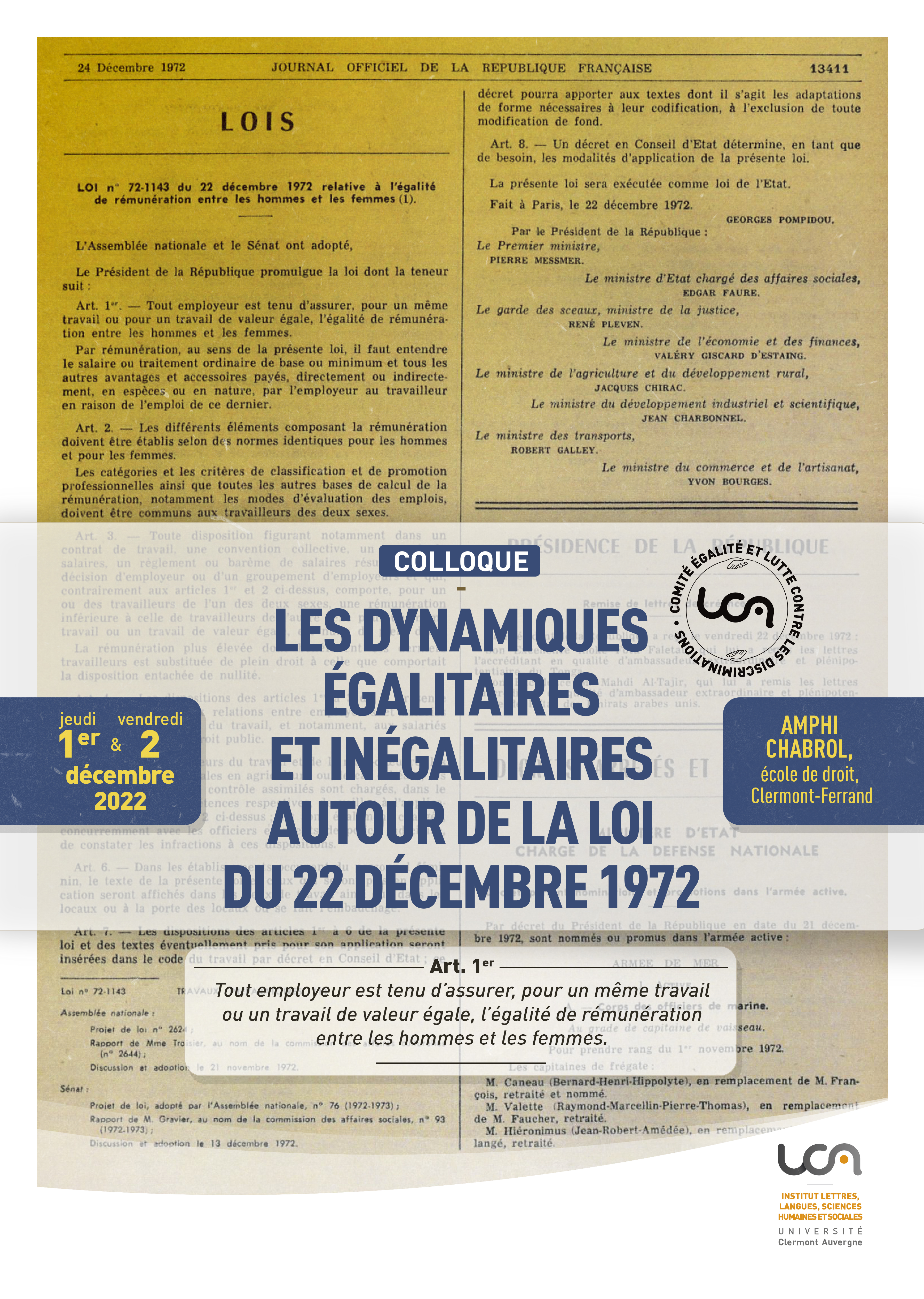 Afin de célébrer le cinquantième anniversaire de la loi sur l’égalité de rémunération entre les femmes et les hommes, l’Université Clermont Auvergne organise un colloque. Ce colloque vise à comprendre l’origine de ces inégalités salariales et professionnelles et à proposer des actions concrètes qui pourraient permettre de les supprimer.