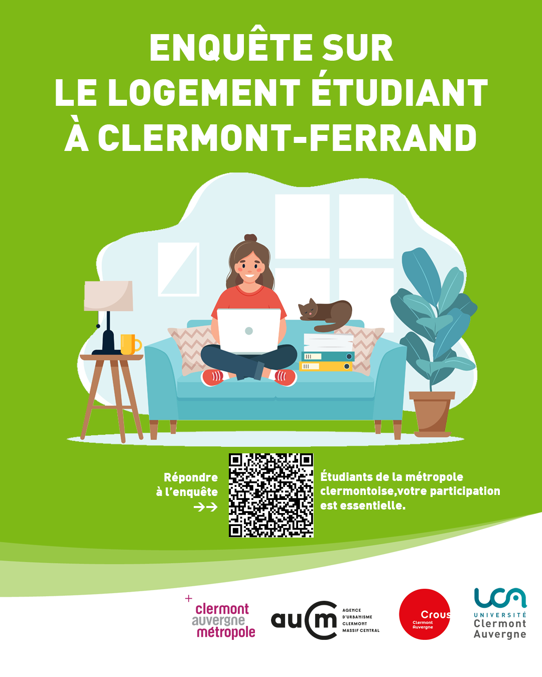Clermont Auvergne Métropole, l’Université Clermont Auvergne et le Crous Clermont Auvergne souhaitent mieux conna?tre les conditions de logements des étudiants clermontois pour pouvoir agir et les améliorer.