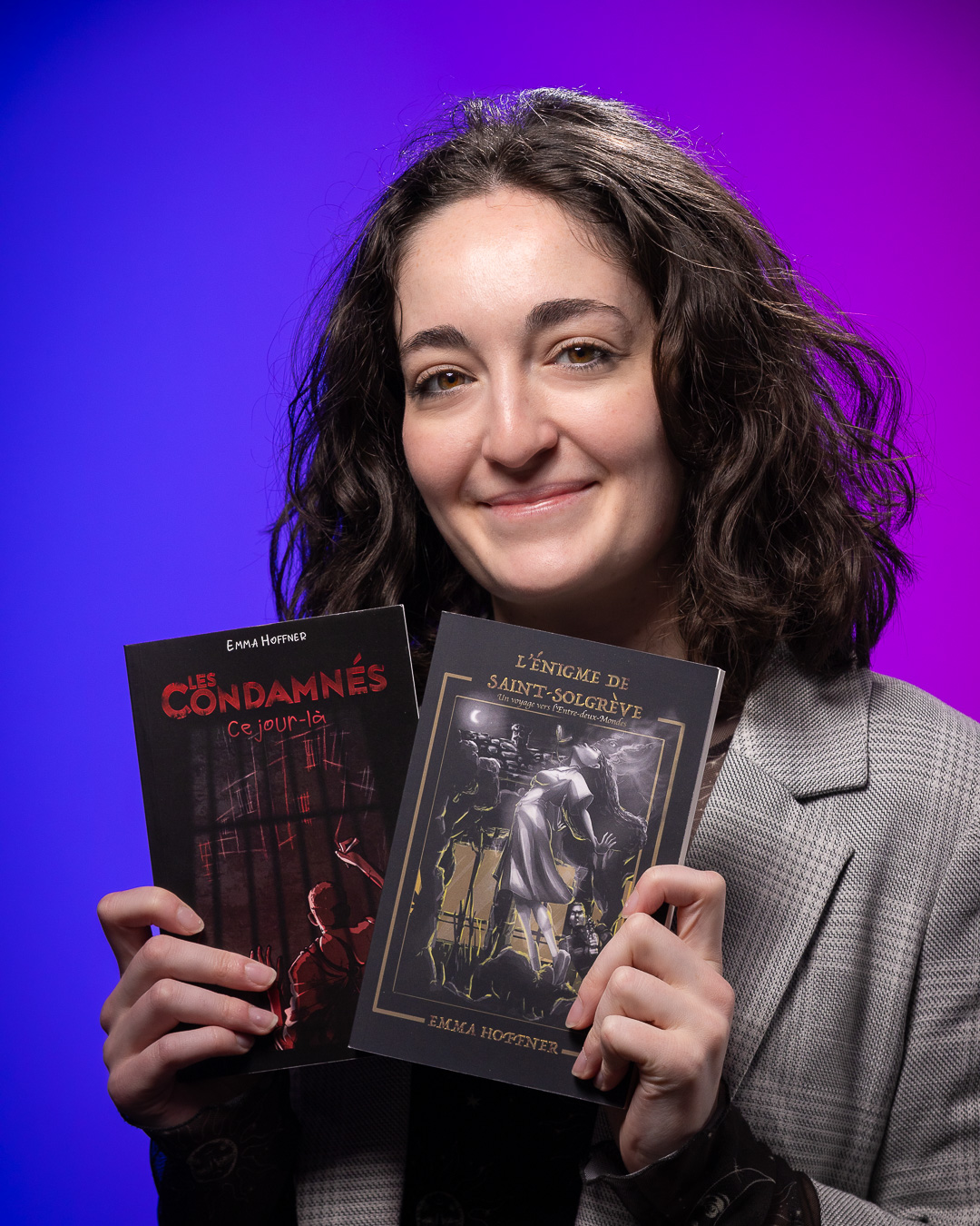 Emma Hoffner est autrice de thrillers et étudiante en parcours D2E (Dipl?me ?tudiant-Entrepreneur) avec Clermont Auvergne Pépite. Elle anime des ateliers d’écriture créatifs pour les jeunes avec son projet ? En Quête de Plume ?.