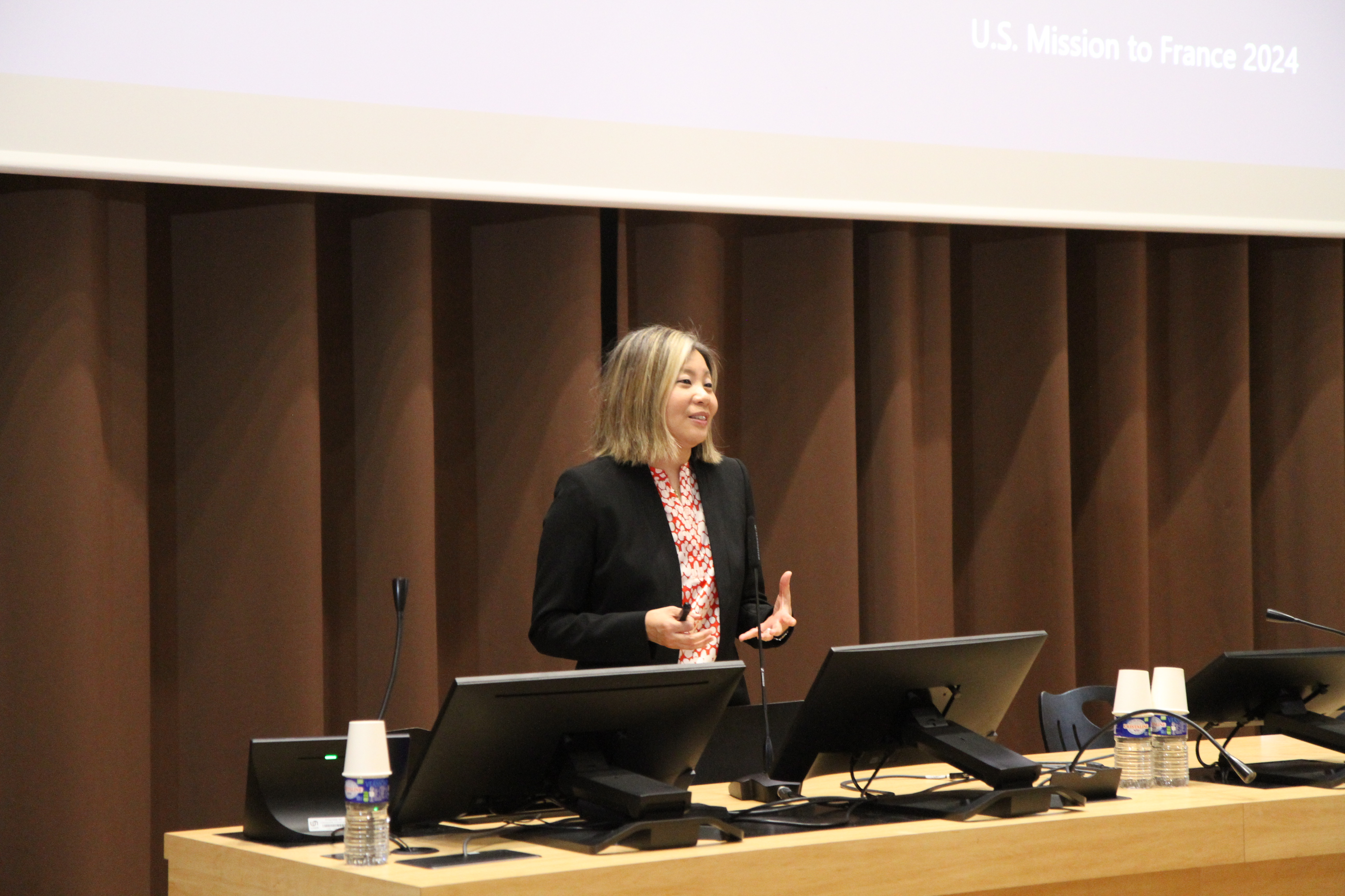 Madame Mueller a été introduite par Monsieur Jean-Fran?ois Riffard, Doyen de l’?cole de Droit, ainsi que par Monsieur David Martini et Madame Judith Laskowski, enseignants du Dipl?me Universitaire Droit Américain à l’UCA. Au cours de la conférence, des thèmes essentiels tels que le r?le du collège électoral, le processus des primaires et le système bipartite ont ainsi été abordés. La session s'est ensuite poursuivie par un échange enrichissant avec les étudiants de l'?cole de Droit, leur permettant d'approfondir leur compréhension des enjeux électoraux américains et du r?le de diplomate.