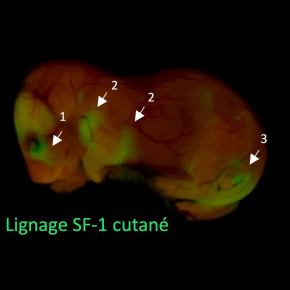 Ces travaux proposent pour la première fois une origine plausible aux lésions cutanées du CNC qui seraient le résultat d’une activité pro-mélanogénique excessive d’une nouvelle population de fibroblastes dermiques partageant des précurseurs embryonnaires communs avec les cellules stéro?dogènes. Enfin, ces populations cellulaires accompagnent le développement embryonnaire et périnatal des organes génitaux externes et de la glande mammaire, suggérant que dans un contexte physiologique elles pourraient participer à la maturation des fonctions de reproduction.