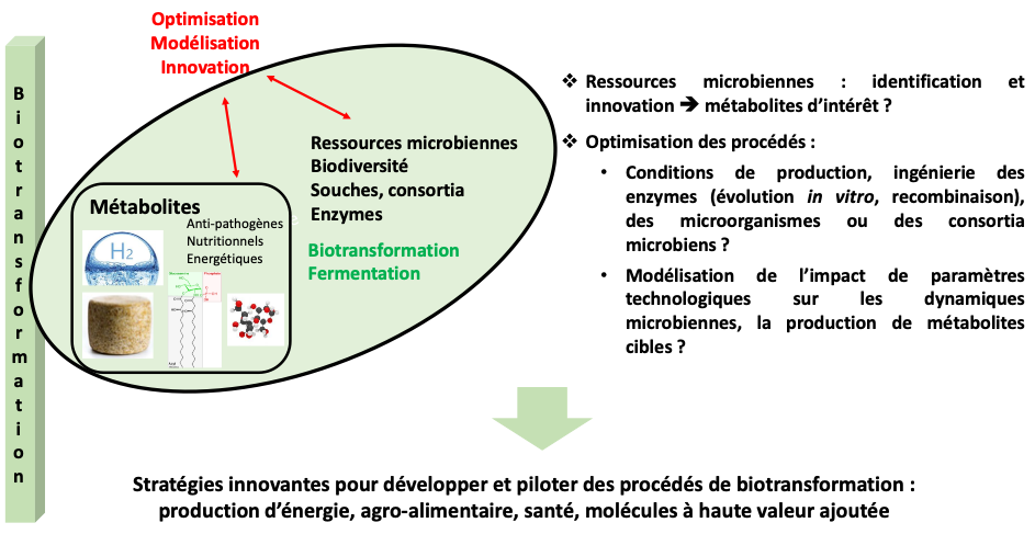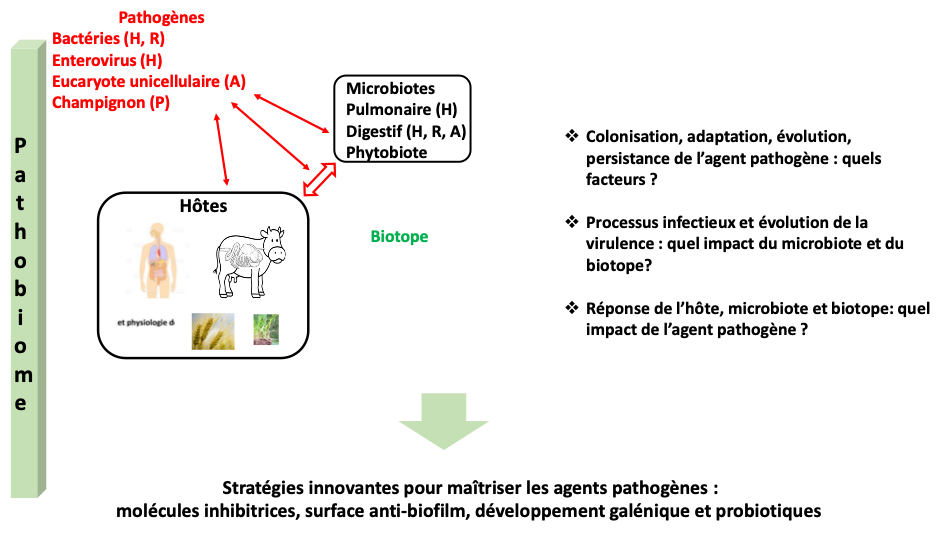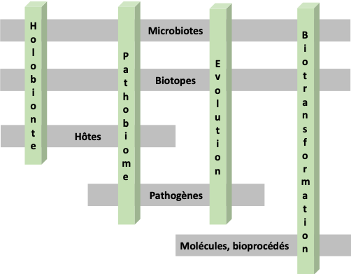 Les concepts et les technologies en lien avec la microbiologie évoluent sans cesse. C’est un défi majeur que de s’adapter à cette évolution, mais aussi de dépasser les approches monospécifiques et culturales pour intégrer des concepts nécessitant d’une part, une démarche interdisciplinaire et, d’autre part, une mutualisation des compétences et des outils innovants (métagénomique, métatranscriptomique, métaprotéomique, métabolomique, analyse des réseaux, modélisation…). Cette conception permet l’étude des interactions microbiennes omniprésentes à tous les niveaux d’intégration du vivant : molécules, gènes, génomes, organites, cellules, populations, communautés, microbiotes complexes en lien avec l’organisme h?te ou, le biotope dans les domaines de la nutrition, de la santé et de l’environnement.