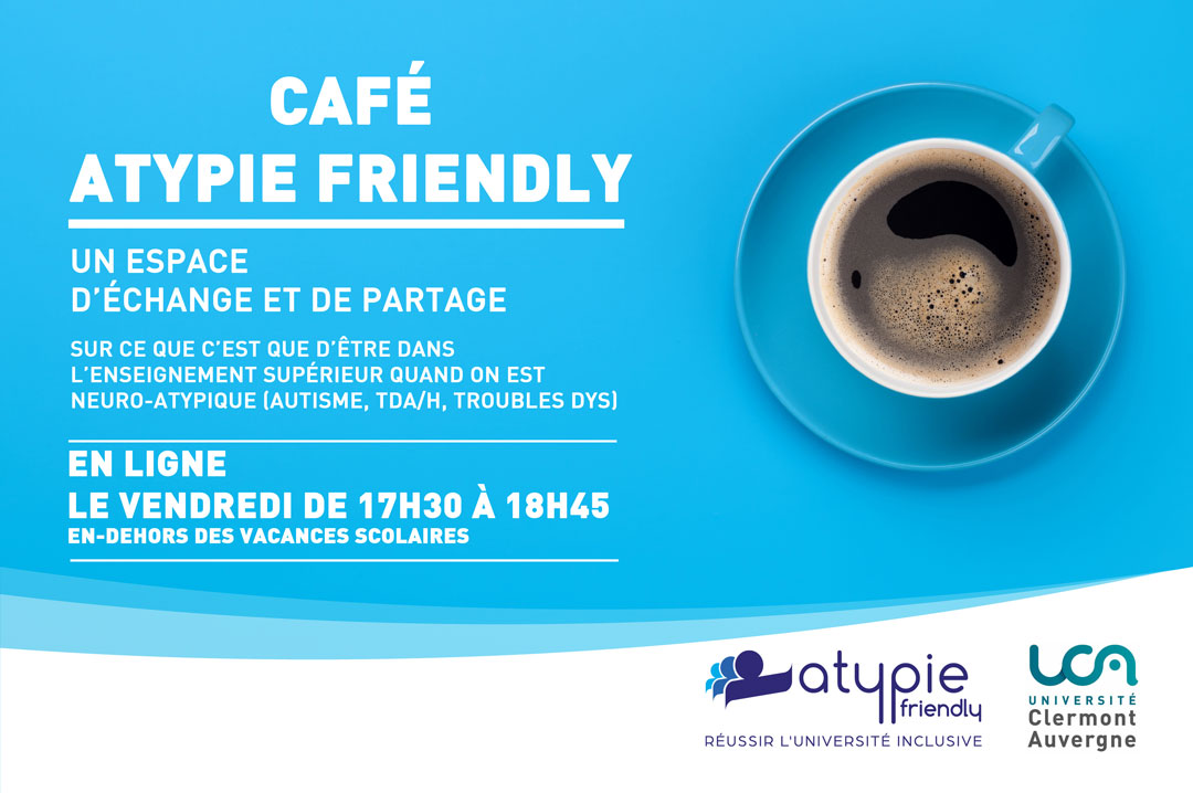 Ouvert à tous (toute personne concernée et/ou intéressée), le café est un espace d’échange et de partage sur ce que c’est que d’être dans l’enseignement supérieur quand on est neuro-atypique.